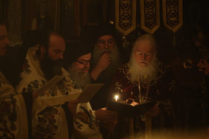 Десния хор оглави геронда Дамаскин от Неа Скити със своята братия, а левия – ватопедски отци заедно с Георгиос Константину и Костас Ланарас.